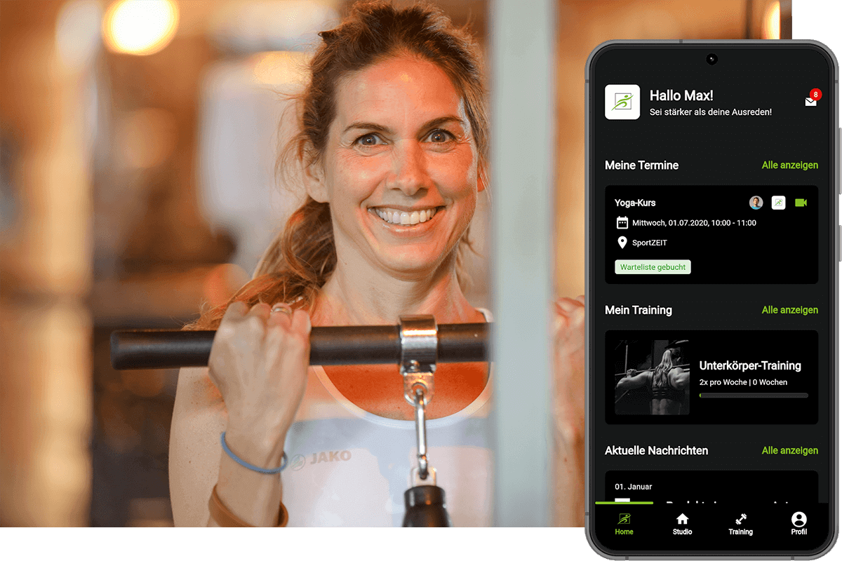 Mit unserer App hast Du Dein Studio immer dabei: plane Dein Training, buche Kurse, verfolge Deine Fortschritte und erhalte alle wichtigen Infos direkt auf Dein Smartphone. Einfach, modern und immer aktuell.